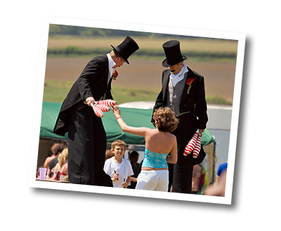 Phillippe Philloppe – Comedy Jugglers, Festive Gents, Victorian Gents, Victorian Coppers, The 2 Silly Frenchmen, Ship Shape juggling Sailors and Stilt Cyclists extraordinaire. The Dapper Chaps – Stlit Cyclists, Penny Farthing Chaps, The Racing Chaps, The Dapper Chefs, The Chequered Chaps, Dapper Tweed, The Chipper Coppers and The Rat Pack chaps. We are Three – The Tux jugglers three, Ello Ello Ello, The tall bike Trio, The 3 Counties Morris aka Twiddly Diddle Dee and we are always coming up with new stuff! 4 or More – A veritable quadridium of coppers, Gents and Jugglers, Corporate and festival circus instructors and more..